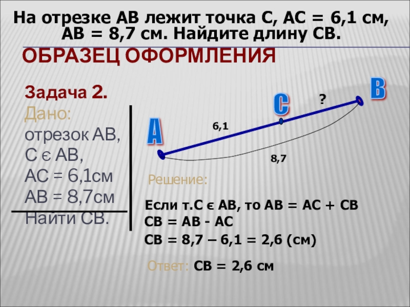 СВ = 8,7 – 6,1 = 2,6 (см)