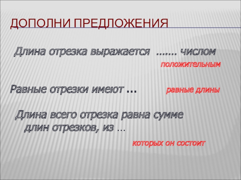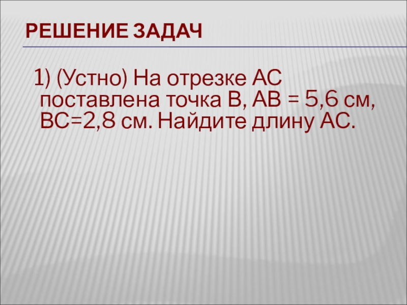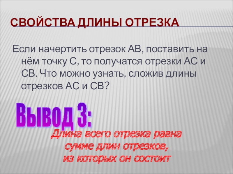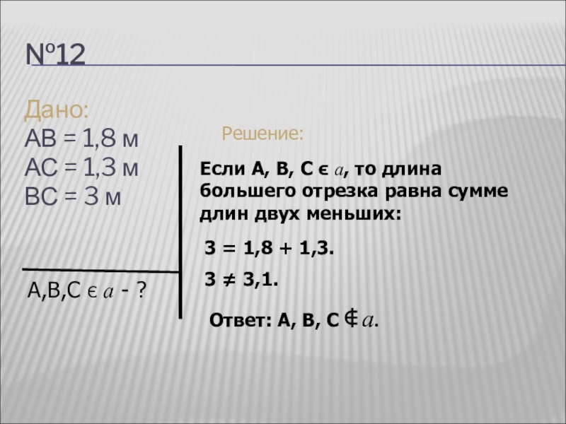 Если А, В, С ϵ а, то длина большего отрезка равна сумме длин двух меньших:
