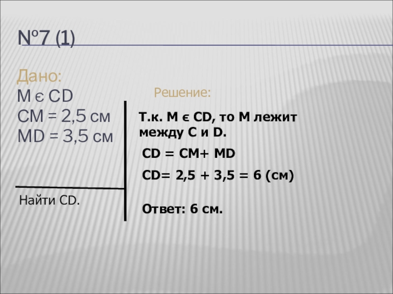 На отрезке АВ лежит точка С, АС = 6,1 см, АВ = 8,7 см. Найдите длину СВ.