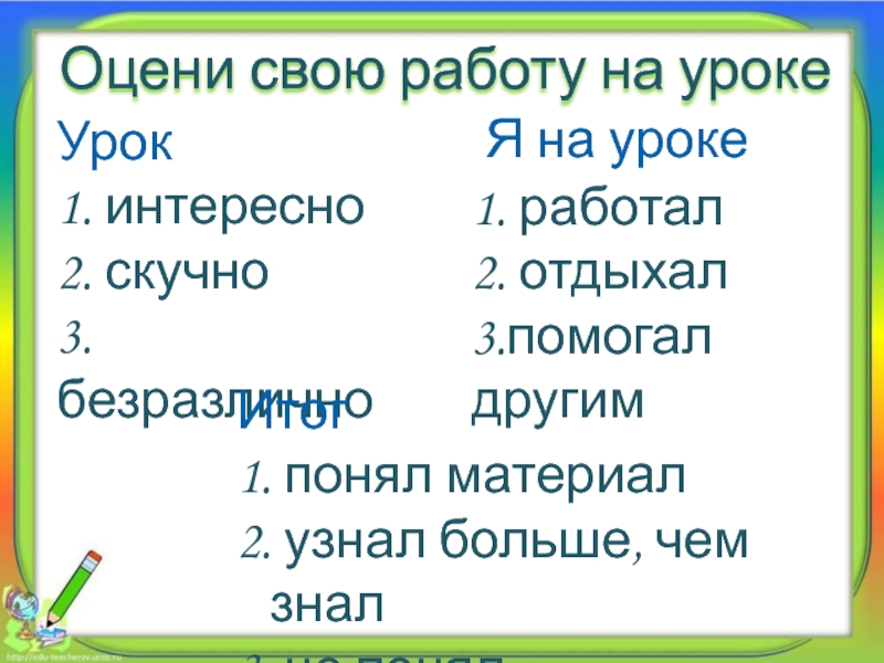 Это сайт презентаций, где можно хранить и обмениваться своими презентациями, докладами, проектами, шаблонами в формате PowerPoint с другими пользователями. Мы помогаем школьникам, студентам, учителям, преподавателям хранить и обмениваться учебными материалами.