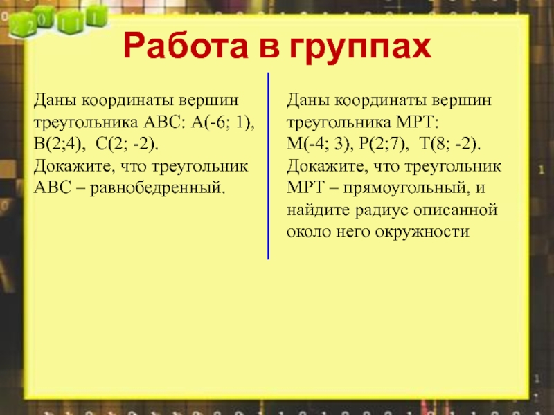 Даны координаты вершин треугольника МРТ: