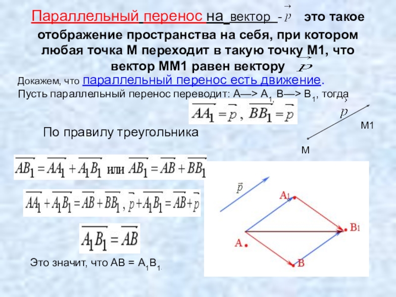 Пусть параллельный перенос переводит: А—> А1, В—> В1, тогда