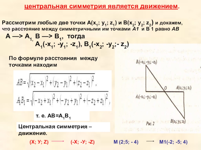 M1(x1; y1; z1), симметричных относительно точки О.