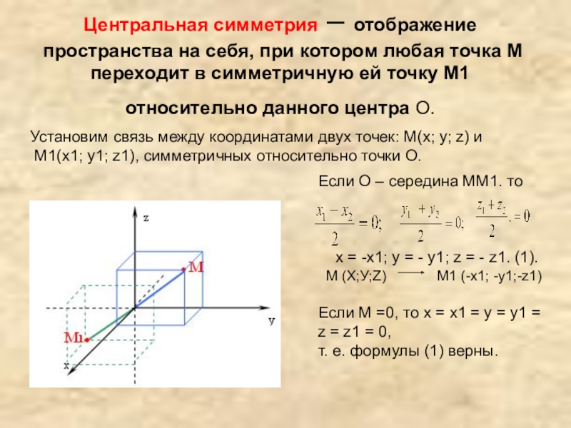 М (Х;У;Z) М1 (-х1; -у1;-z1)