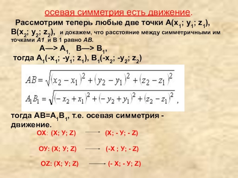 тогда АВ=А1В1, т.е. осевая симметрия - движение.