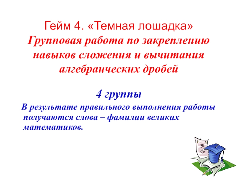 В результате правильного выполнения работы получаются слова – фамилии великих математиков.