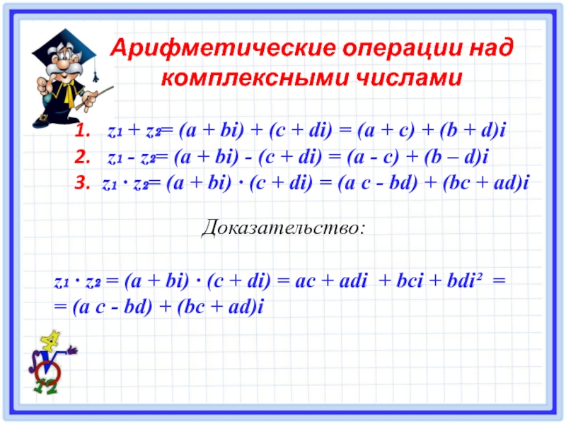 z₁ · z₂ = (а + bi) · (с + di) = ас + аdi + bсi + bdi² =
