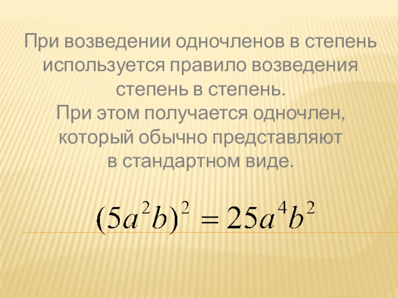 Слайд 3При возведении одночленов в степень используется правило возведения степень в степень.