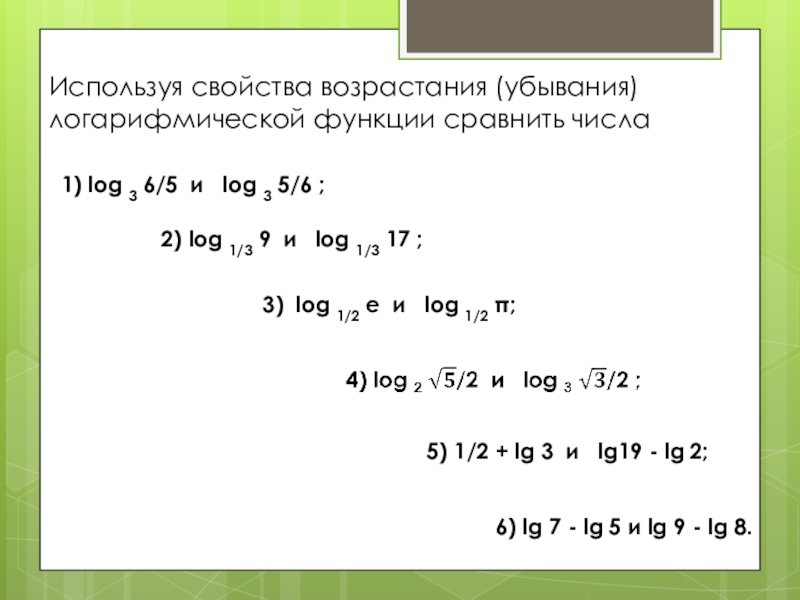 6) lg 7 - lg 5 и lg 9 - lg 8.