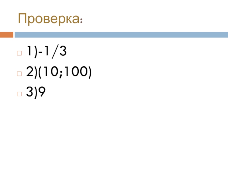 Тест (взимопроверка)1).Log28x=-1 2√2;-3;-1/3;1/3;- 2√2;2).lg2x - 3lgx + 2 = 0(0,1);(1;2);(10;100);(-1;2);3)Найти произведение корней уравнения:6log23x-12log3x=0-6;18;0;6;9