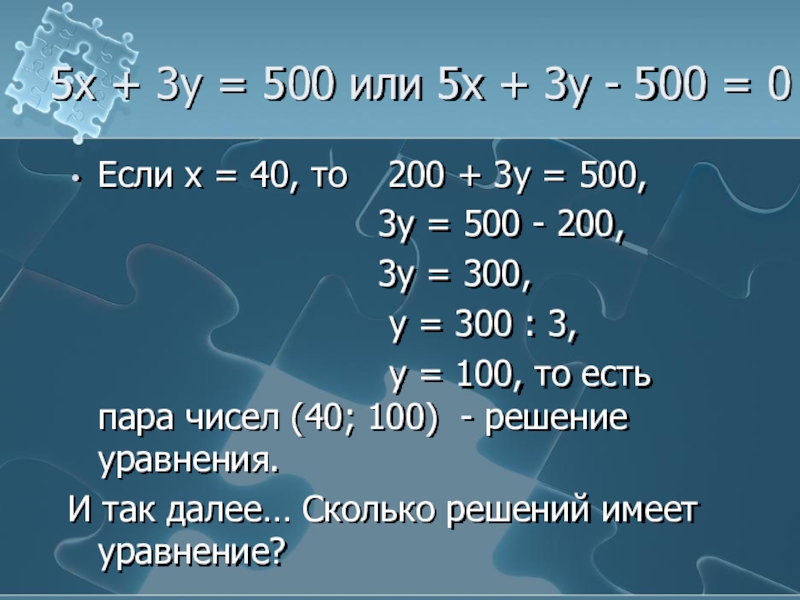у = 100, то есть пара чисел (40; 100) - решение уравнения.