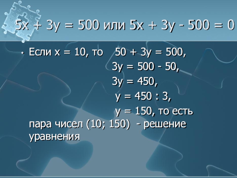 Если х = 10, то 50 + 3у = 500,