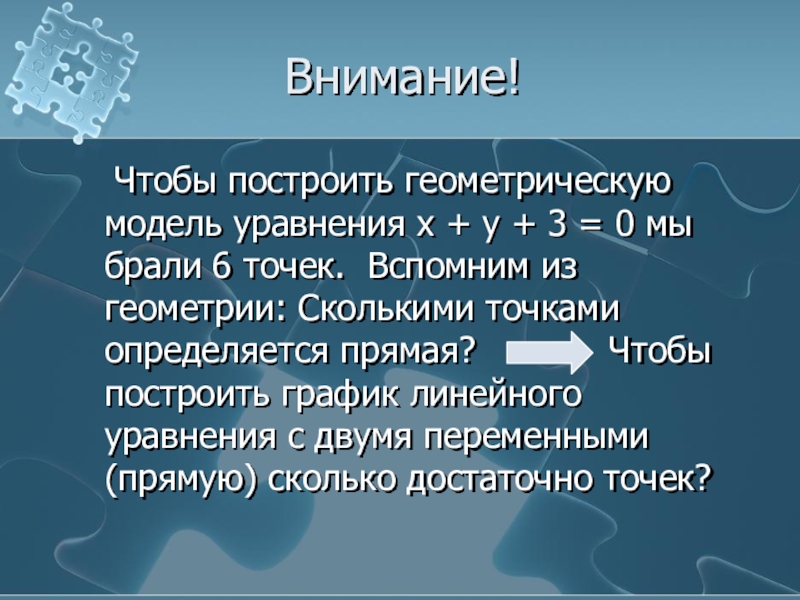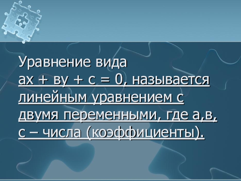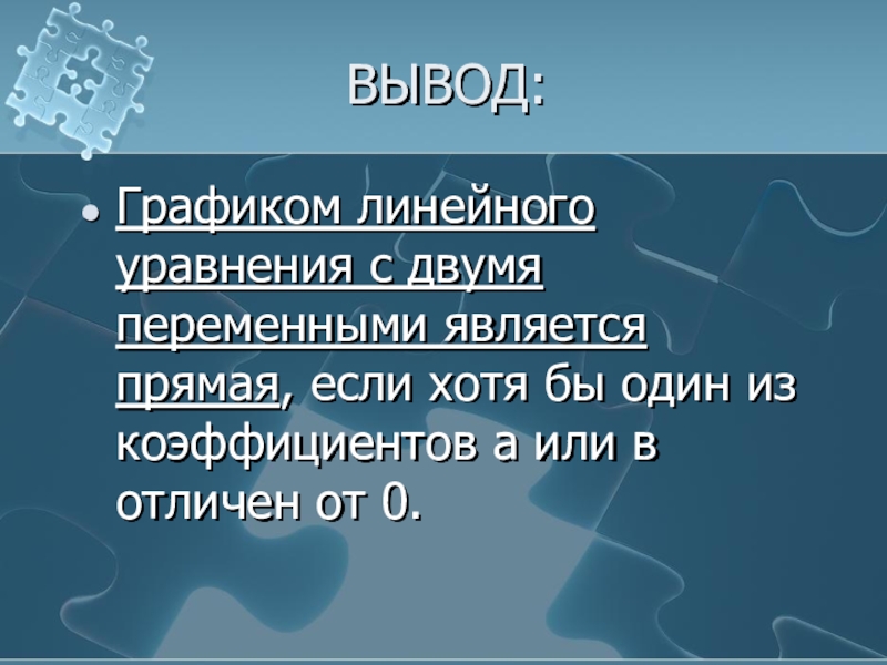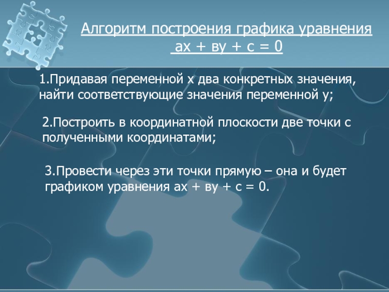 3.Провести через эти точки прямую – она и будет графиком уравнения ах + ву + с = 0.