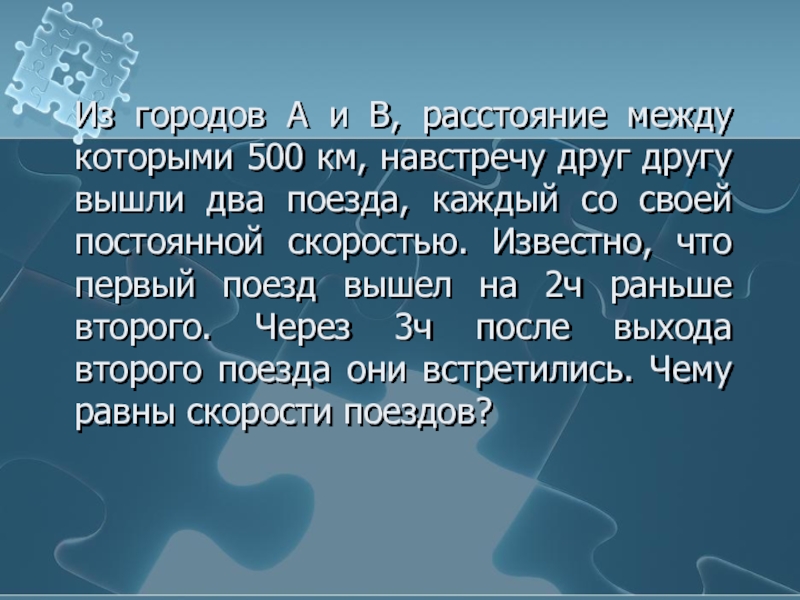 если х = 100, то … у = 0, т.е. (100;0) –решение уравнения, но! не решение задачи!, т.к. скорость не может быть = 0, поезд двигался!)
