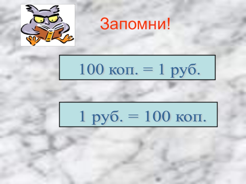 Запомни!100 коп. = 1 руб. 1 руб. = 100 коп.