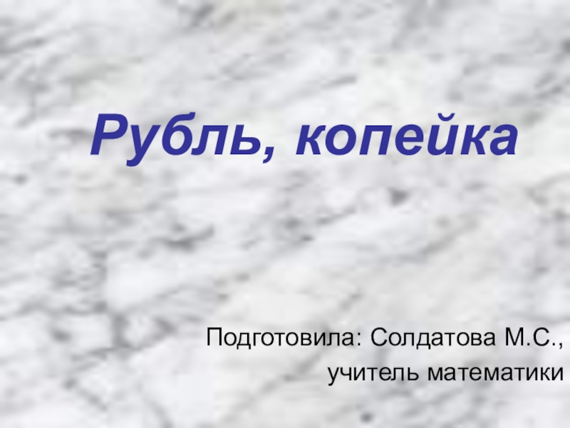 Рубль, копейка Подготовила: Солдатова М.С.,учитель математики