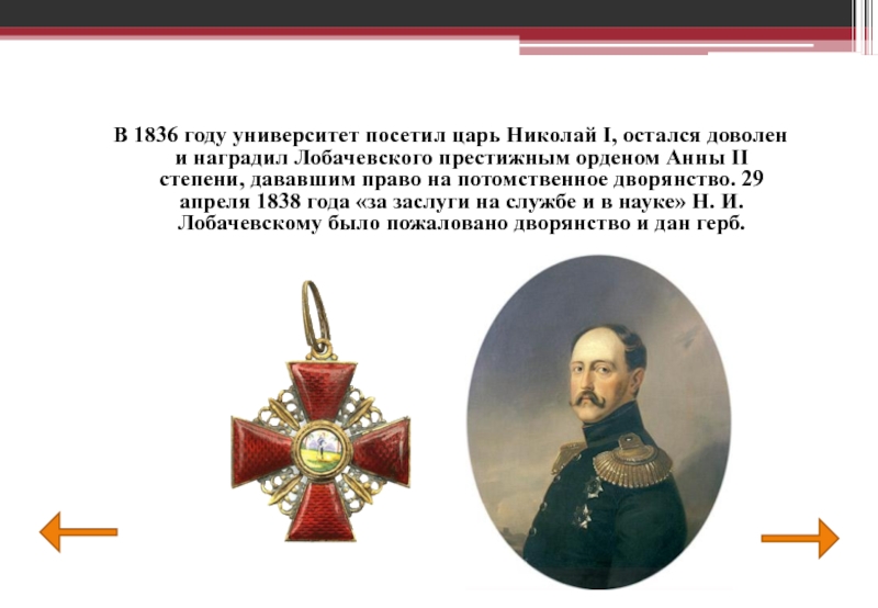 По окончании университета Лобачевский получил степень магистра по физике и математике с отличием и был оставлен при университете; перед этим его заставили покаяться за «дурное поведение» и дать обещание впредь вести себя примерно.