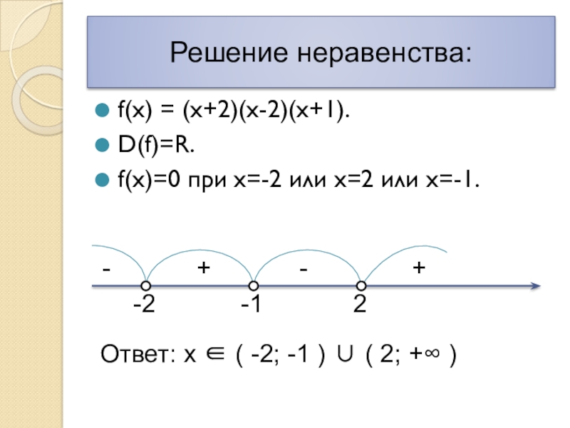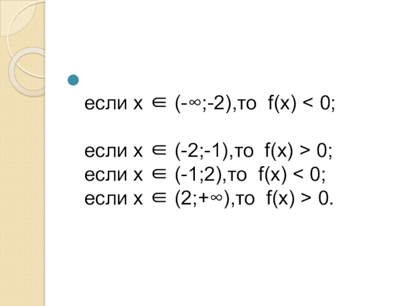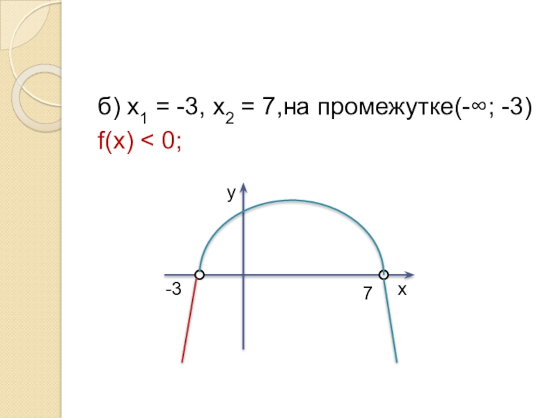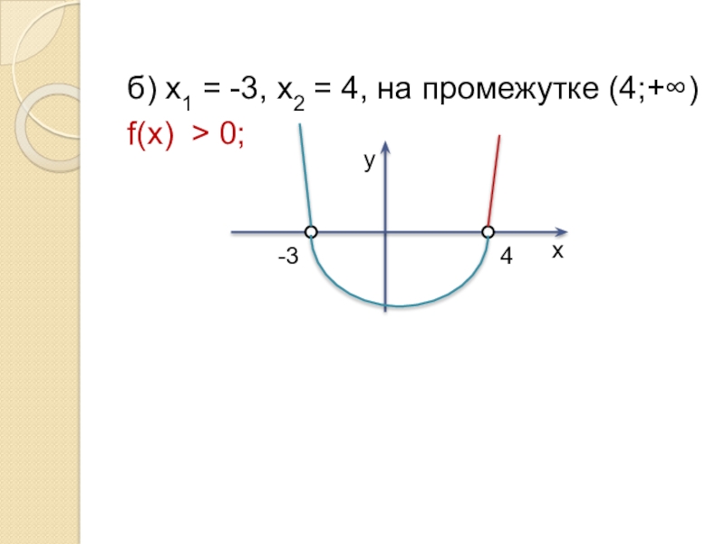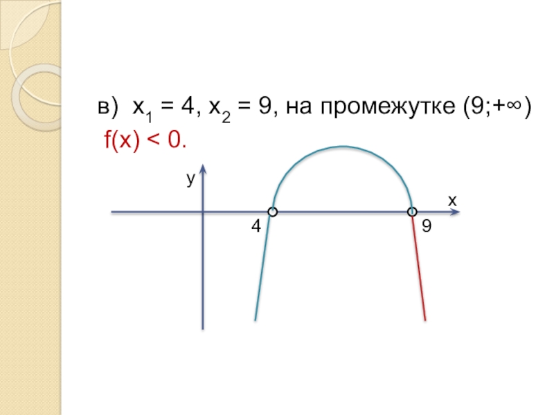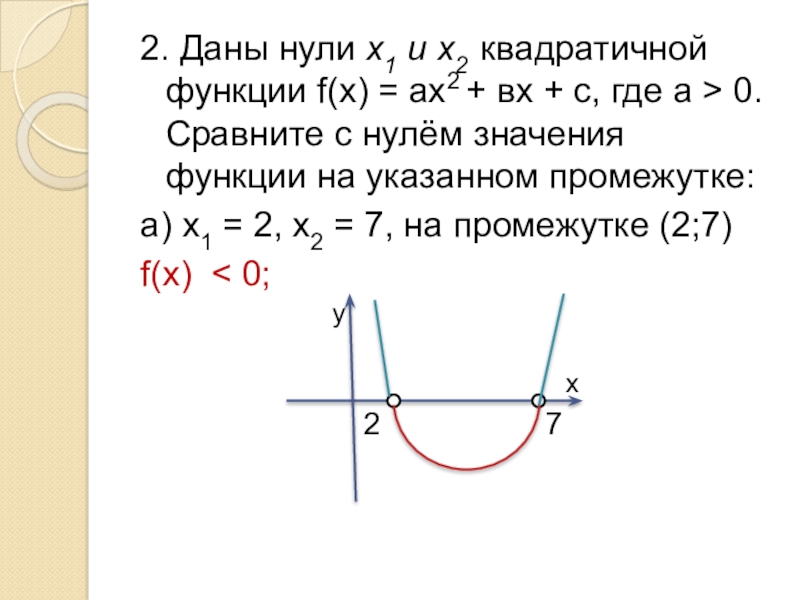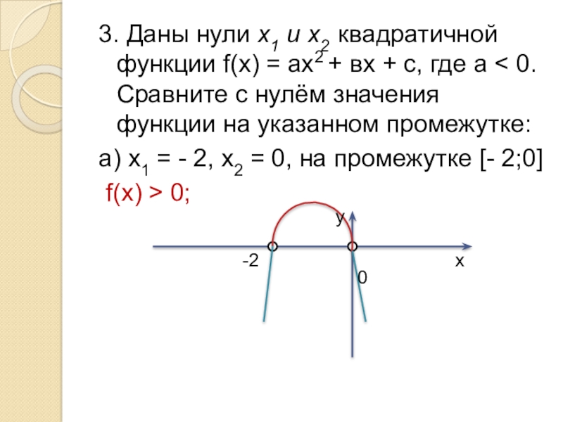 3. Даны нули х1 и х2 квадратичной функции f(х) = ах2 + вх + с, где а < 0. Сравните с нулём значения функции на указанном промежутке: