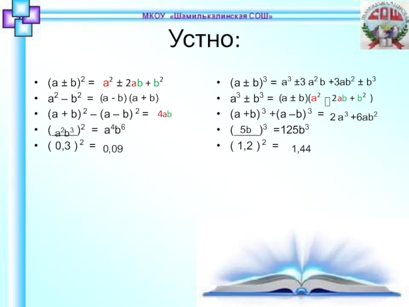(а ± b)2 =