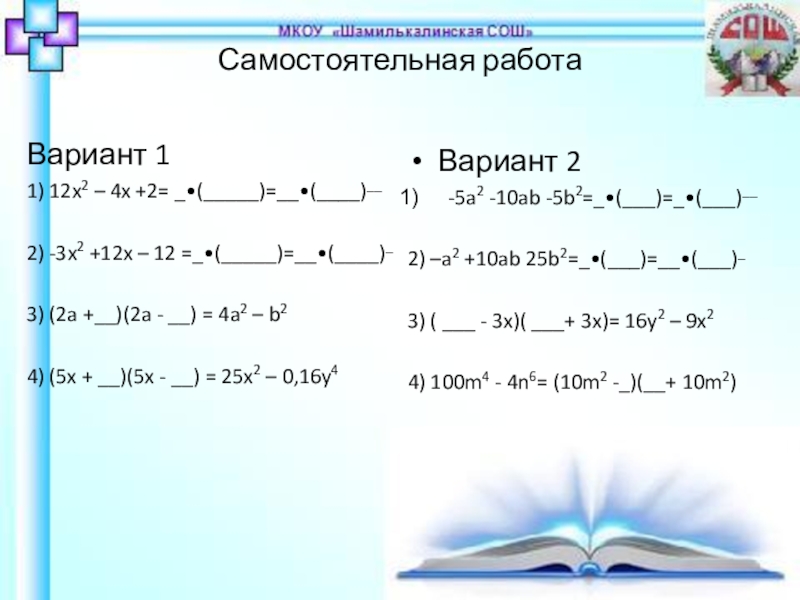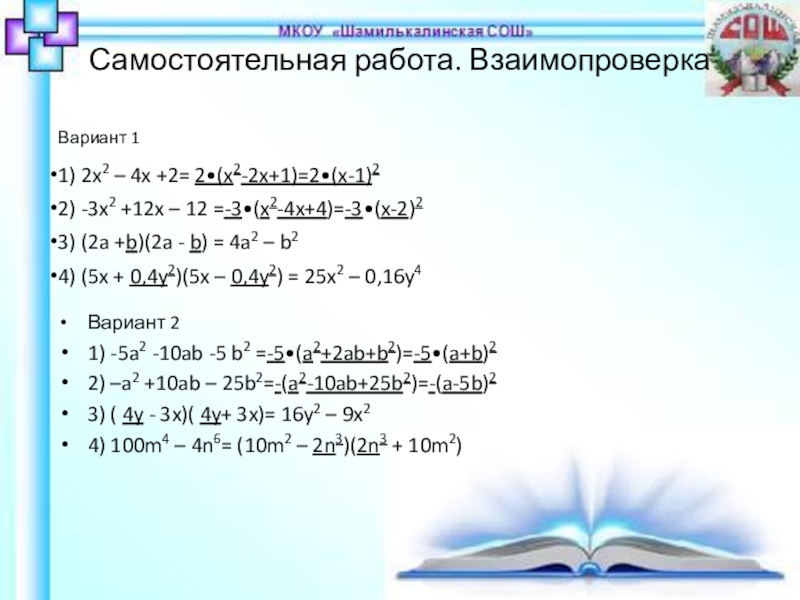 4) 100m4 - 4n6= (10m2 -_)(__+ 10m2)