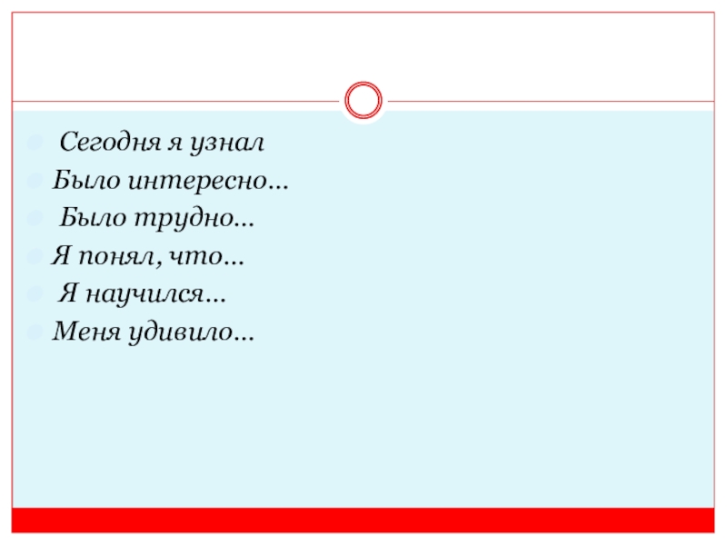 Сегодня я узналБыло интересно… Было трудно… Я понял, что… Я научился… Меня удивило…