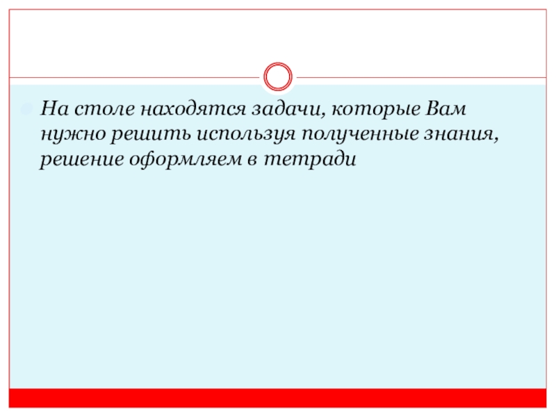 На столе находятся задачи, которые Вам нужно решить используя полученные знания, решение оформляем в тетради