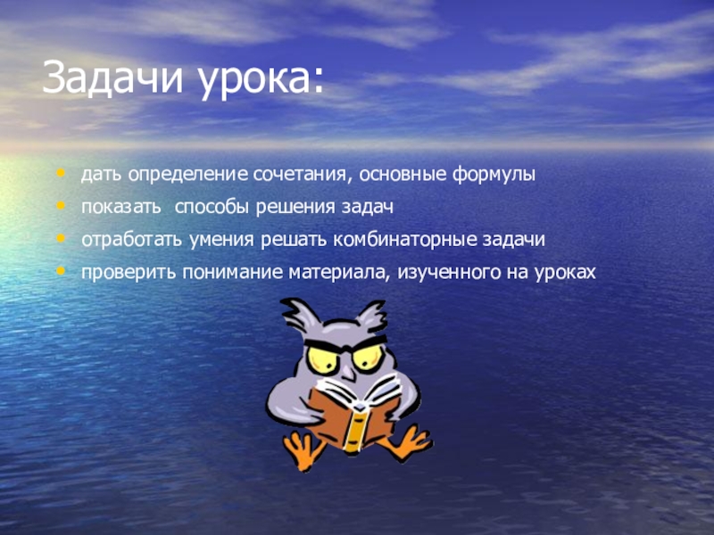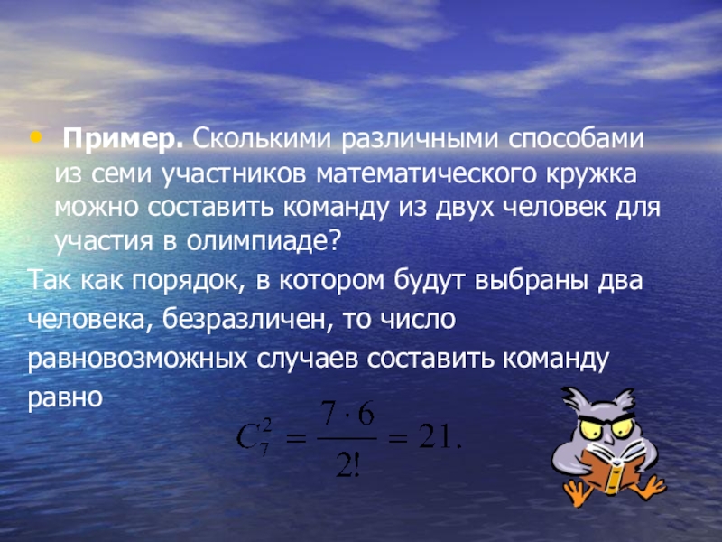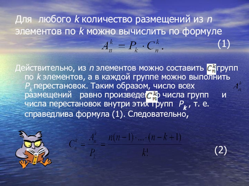 Подчеркнем, что понятие сочетания не связано с расположением (порядком) элементов. Если в данном сочетании переставить каким-либо образом его элементы, то оно (как сочетание) не изменится.