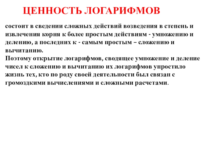 ЦЕННОСТЬ ЛОГАРИФМОВ