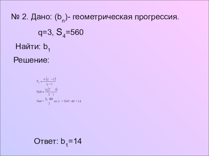 2) В геометрической прогрессии (bп) известны b1 = 1,6 и q = 2. Найдите b5; bk.