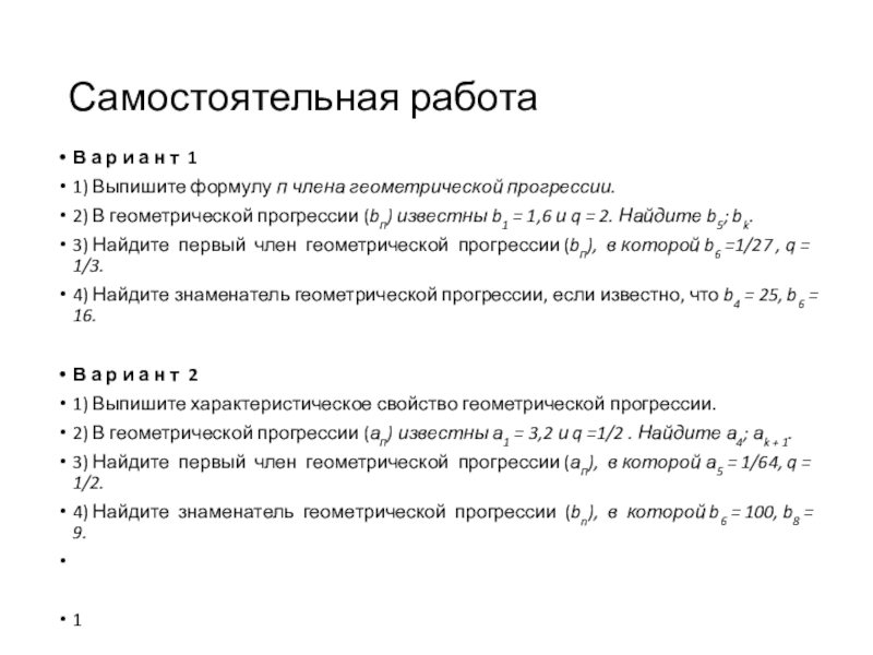 1) Выпишите характеристическое свойство геометрической прогрессии.