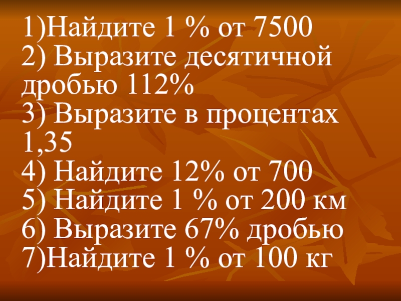 7)Найдите 1 % от 100 кг