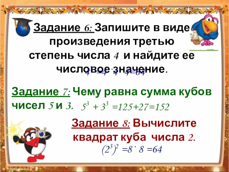 Задание 7: Чему равна сумма кубов чисел 5 и 3.