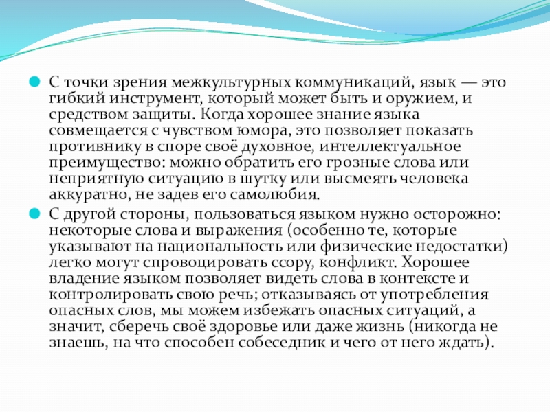 Слайд 15С точки зрения межкультурных коммуникаций, язык — это гибкий инструмент, который