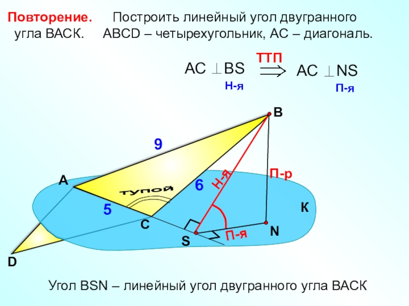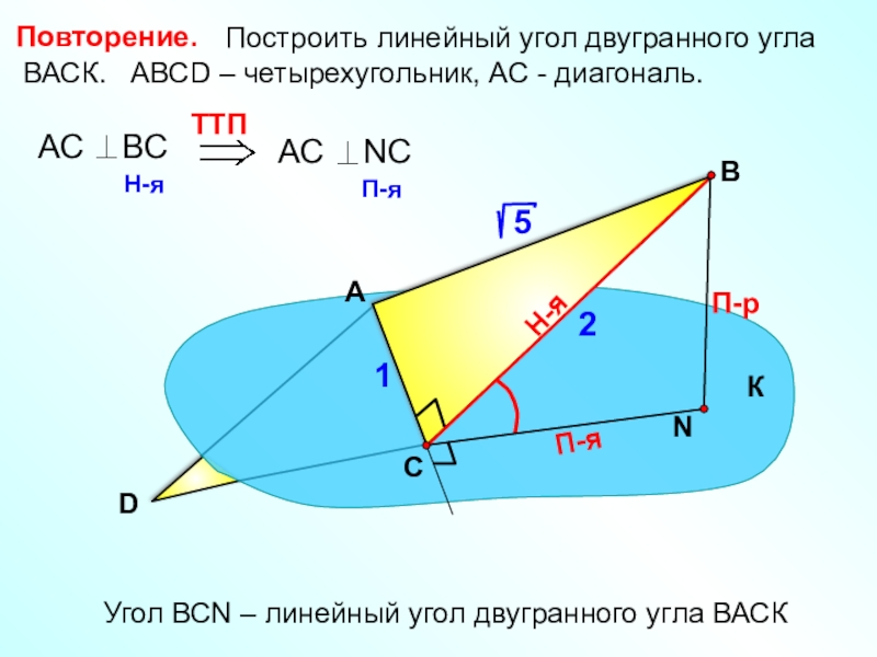 Угол ВСN – линейный угол двугранного угла ВАСК