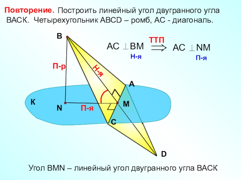 Угол ВMN – линейный угол двугранного угла ВАСК