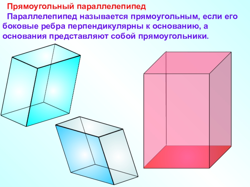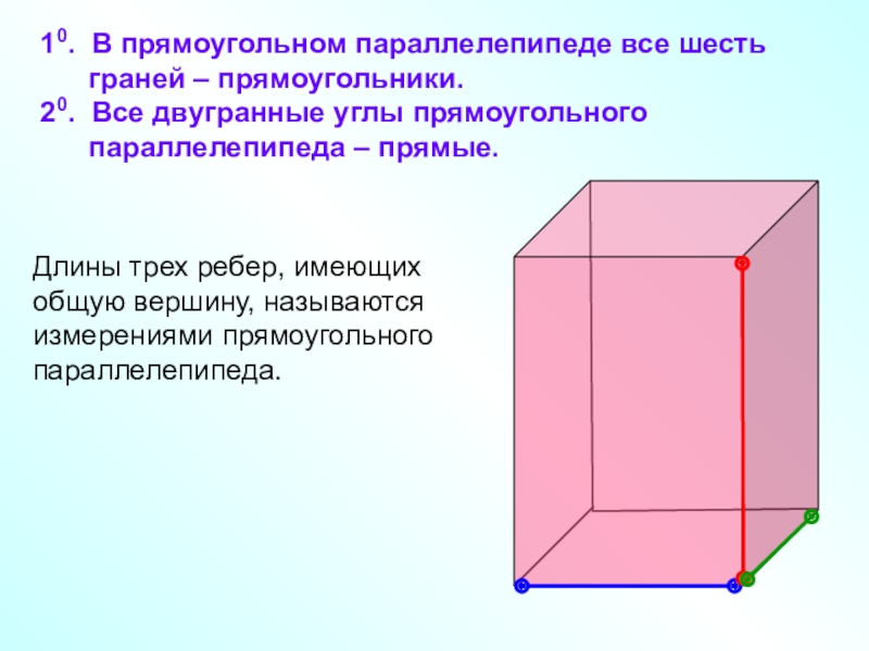 Длины трех ребер, имеющих общую вершину, называются измерениями прямоугольного параллелепипеда.