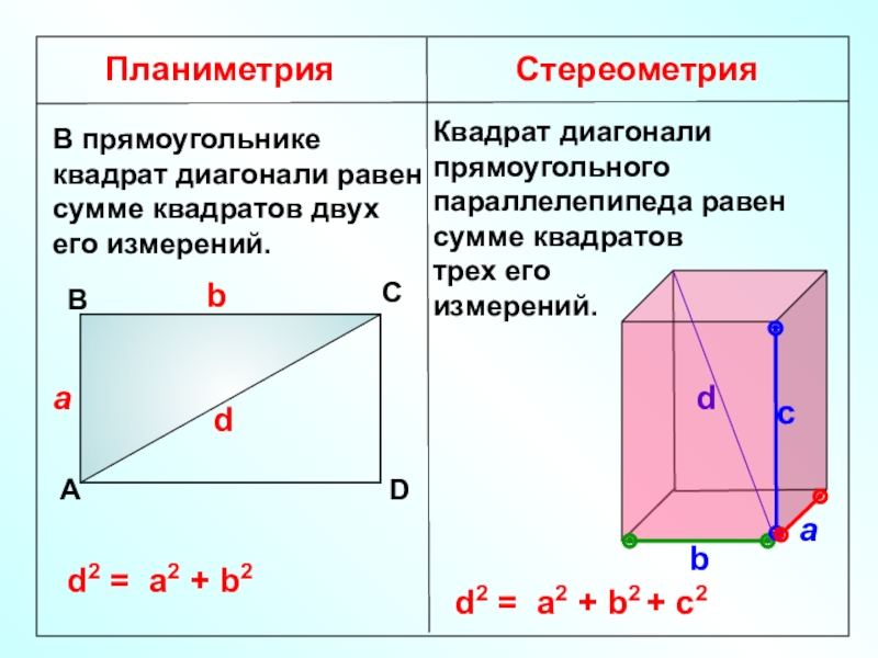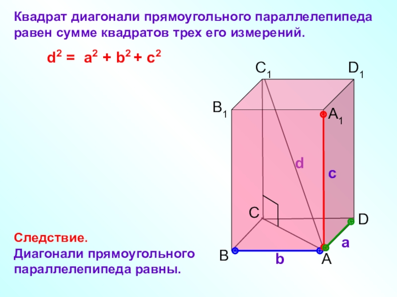 Квадрат диагонали прямоугольного параллелепипеда равен сумме квадратов