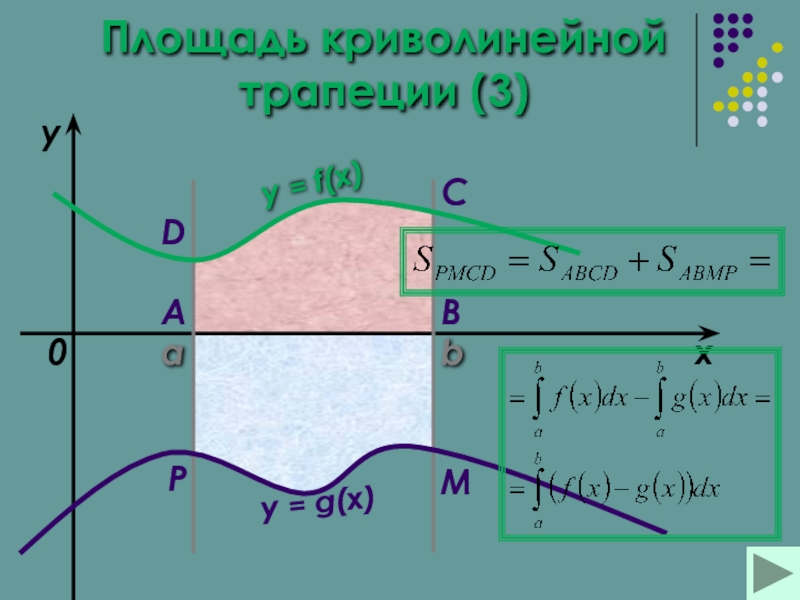 abxyy = f(x)0y = g(x)ABCDMPПлощадь криволинейной трапеции (3)