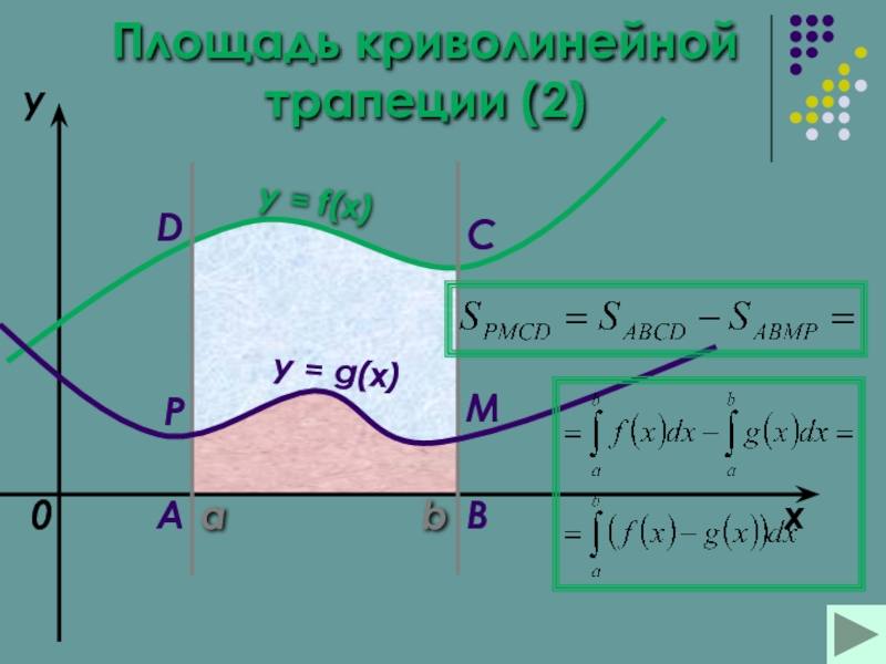abxyy = f(x)0y = g(x)ABCDMPПлощадь криволинейной трапеции (2)