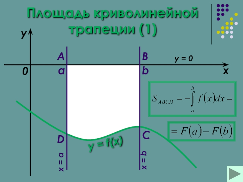 Площадь криволинейной трапеции (1) abxyy = f(x)0ABCDx = ax = by = 0