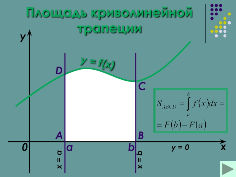 Площадь криволинейной трапеции abxyy = f(x)0ABCDx = ax = by = 0