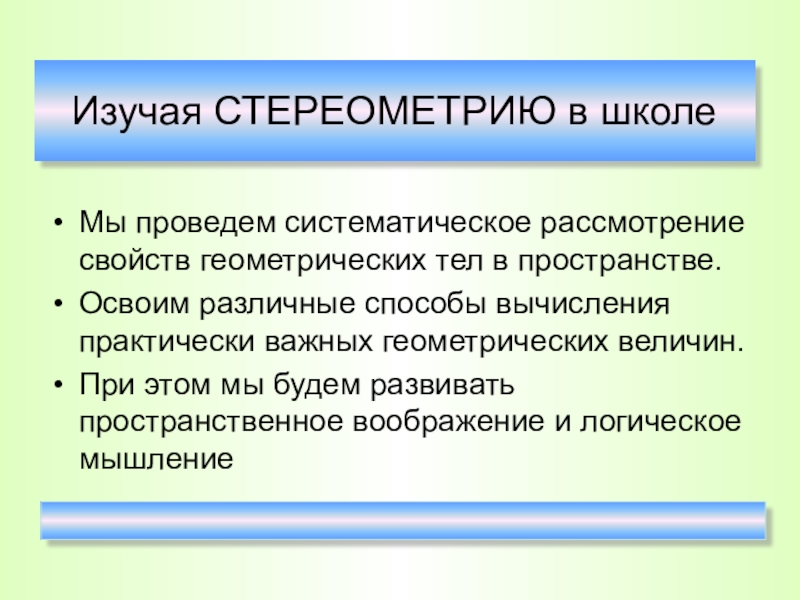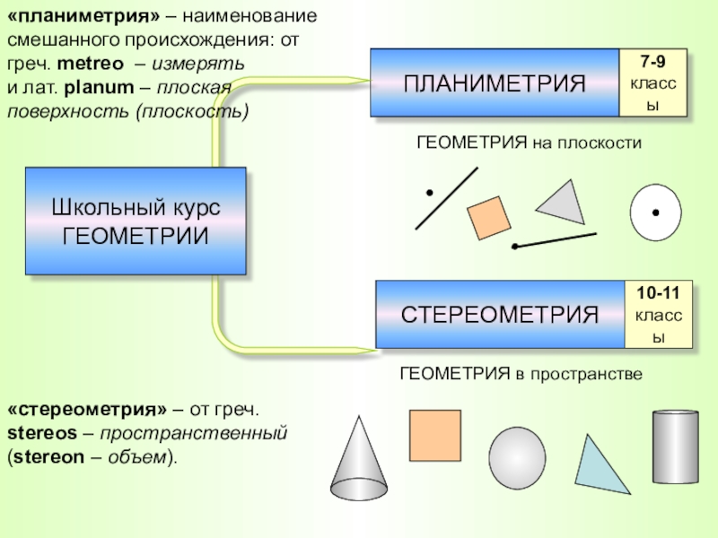 «стереометрия» – от греч. stereos – пространственный (stereon – объем).