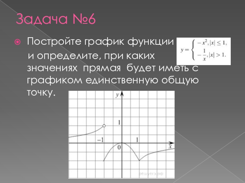 Задача №6Постройте график функции  и определите, при каких значениях  прямая  будет иметь с графиком единственную общую точку.