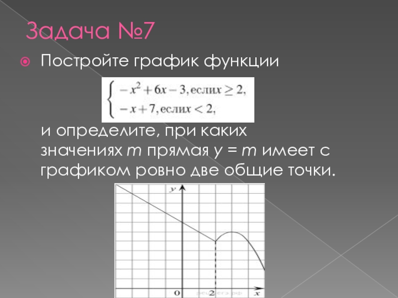 Задача №7Постройте график функции 	и определите, при каких значениях m пря­мая y = m имеет с графиком ровно две общие точки.