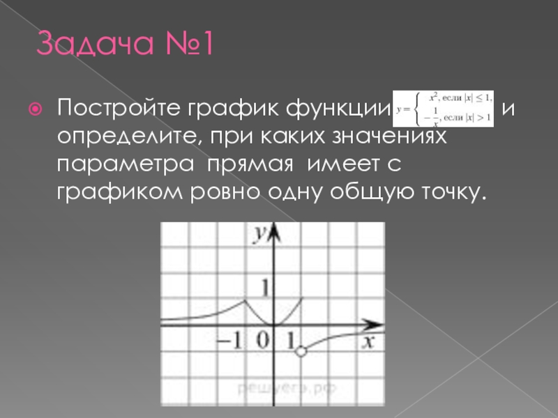 Задача №1Постройте график функции    и определите, при каких значениях параметра  прямая  имеет с графиком ровно одну общую точку.