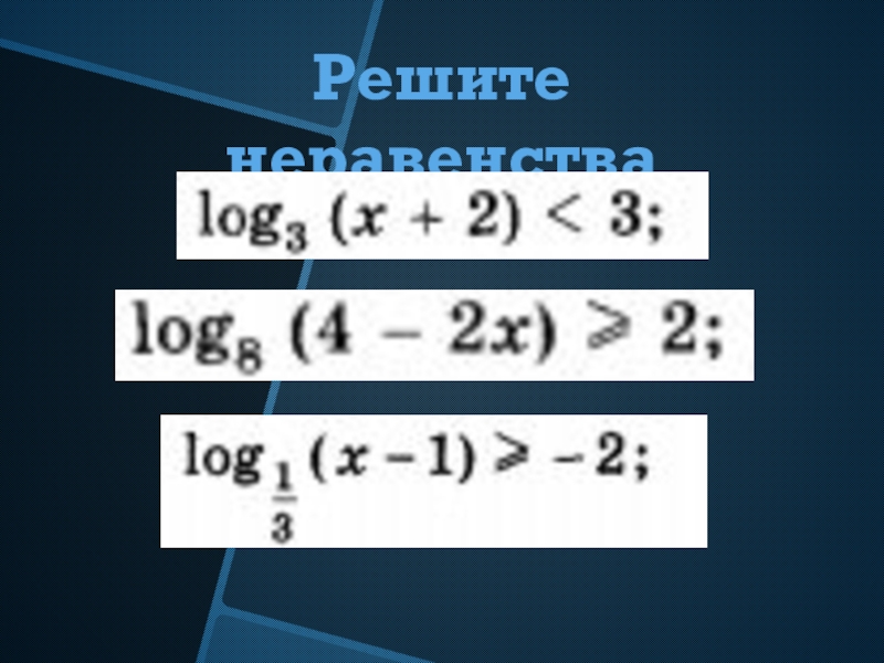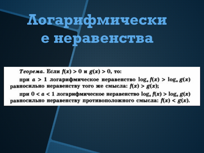 Презентация, доклад к уроку по алгебре в 10 классе Логарифмические неравенства
