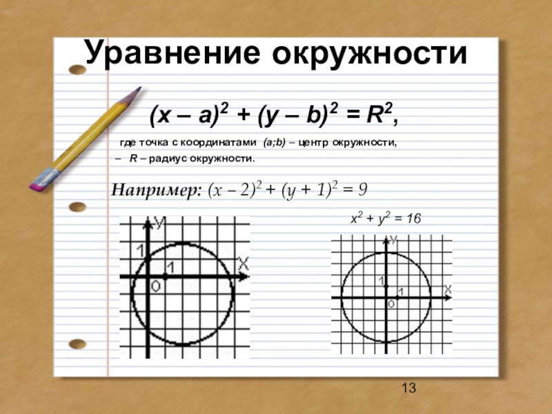 Например: (x – 2)2 + (y + 1)2 = 9