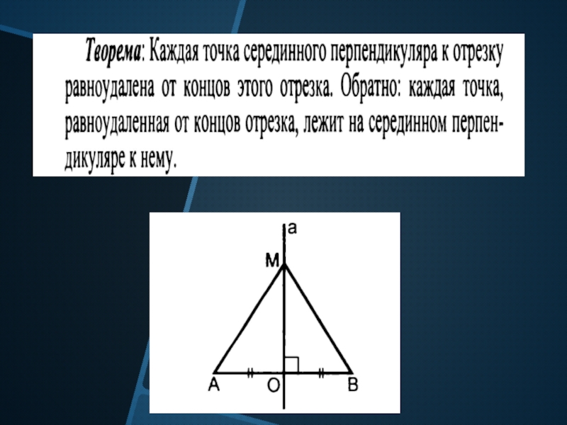 Презентация к уроку по геометрии 8 класс на тему Свойства серединного перпендикуляра к отрезку Алгебра