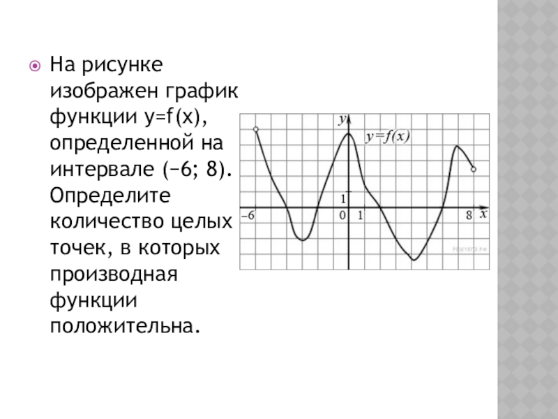 Слайд 14На рисунке изображен график функции у=f(х), определенной на интервале (−6; 8).