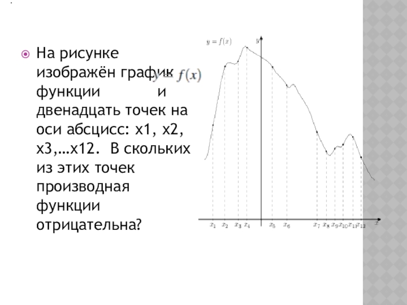 двенадцать точек на оси абсцисс: х1, х2, х3,…х12. В скольких из этих точек производная функции отрицательна?